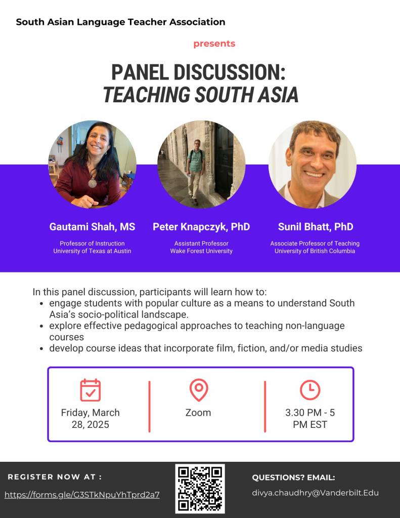 Please join us for a stellar panel discussion on teaching non-language South Asia courses on March 28th